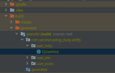 Gradle > other > complieQuerydsl이 추가되어 있는 걸 확인할 수 있다!