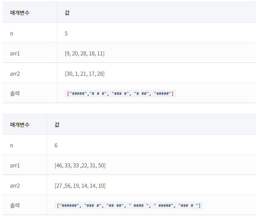 public String[] solution(int n, int[] arr1, int[] arr2) {