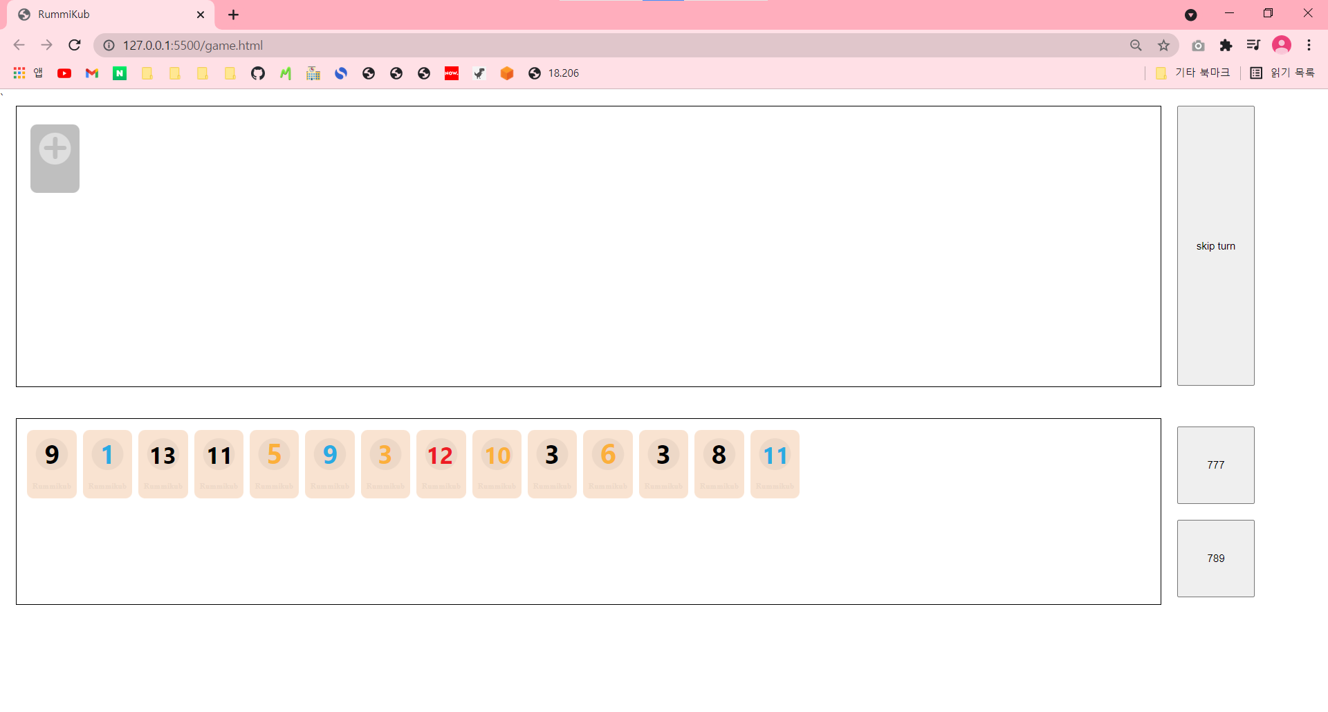 그리고 현재 턴에서 메인 보드에 추가된 타일이 없기 때문에 skip turn 버튼이 다시 block 된다.