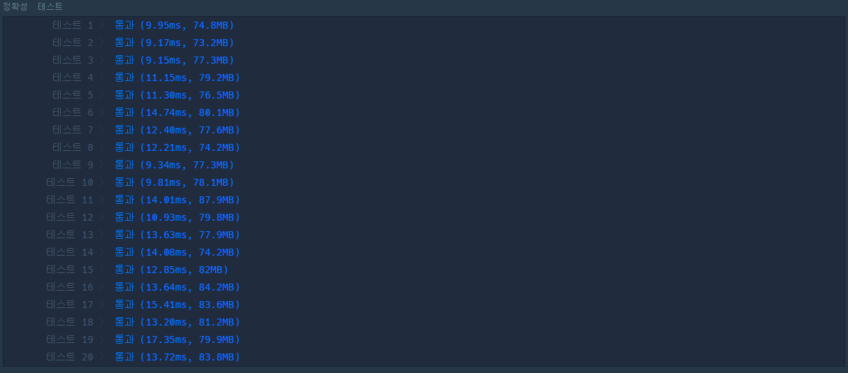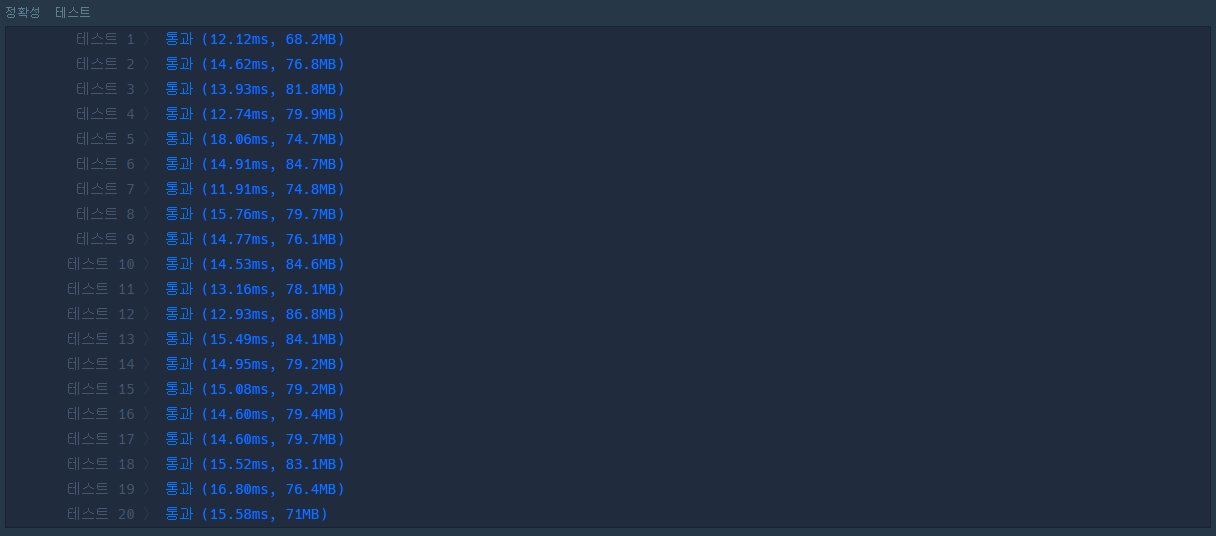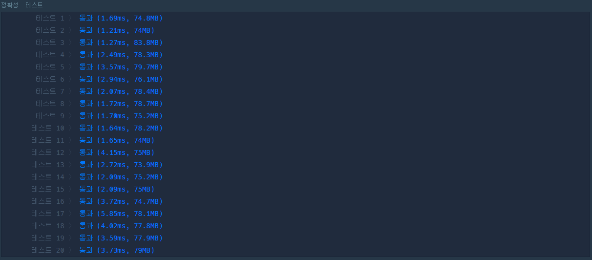 그래서 1번 방법과 유사하면서 간단하게 짰는데... 웬걸..~~ 이렇게 해도 시간이 꽤 나왔다.