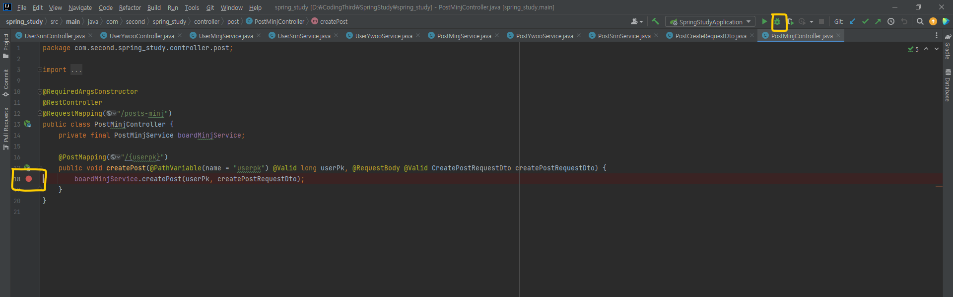 올해 1월 초만 해도 sout을 찍어 내가 요구한대로 잘 되었는지 확인을 했었습니다. 그러던 중 디버그 사용 방법을 배워서 그다음부터는 sout없이 간편하게 코드를 확인할 수 있게 되었습니다!! 다들 sout, log 그만 찍고 디버깅해보세요~~