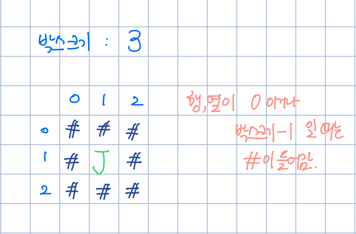4. 행, 열이 0이거나 박스 크키 - 1일 경우 "#" 찍기